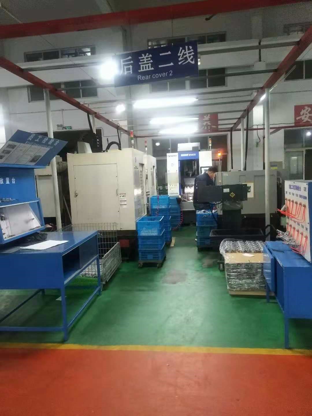 以做后蓋產(chǎn)品為例,我們有單獨(dú)的后蓋生產(chǎn)流水線(后蓋一線)(后蓋二線)(后蓋三線)以及正在調(diào)試的(后蓋四線),在本條流水線有加工車平面,加工安裝耳、控制閥,以及馬上以五軸加工中心斜孔、攻絲。按照工序流程所有的工序加工完產(chǎn)出一件成品?,F(xiàn)有一個(gè)人就可以出成品,周期短。以前一個(gè)甚至兩個(gè)星期現(xiàn)在當(dāng)天就可以出成品。